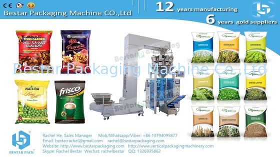 Bestar packing machinery manufacture multi heads weigher vertical grain packing machine, 10-heads or 14-heads combination weigher optional, suitable for the grain and granule products such as: popcorn, snack, puffed food, cheese chips, crispy rice, biscuit crack, crack chips, granule food, biscuit, crack, chip, rice, grain rice, long grain rice, cooked rice, sugar, garlic, spaghetti, vermicelli, soybeans, millet, macaroni, wheat, pumpkin seed, lentils, beans, peas, pulses, sesame seed, green grams, nut, peanut, crunchy coated peanuts, cashew nut, coconut, pistachio nuts, nutcracker, white peanut, groundnuts, mix nuts, raisins, dry fruits, nuts, dry fruit, sunflower kernels, dried pet food, almond, corn beans, sweets, apple slice, dumplings, rice balls, medicines, salad, etc.