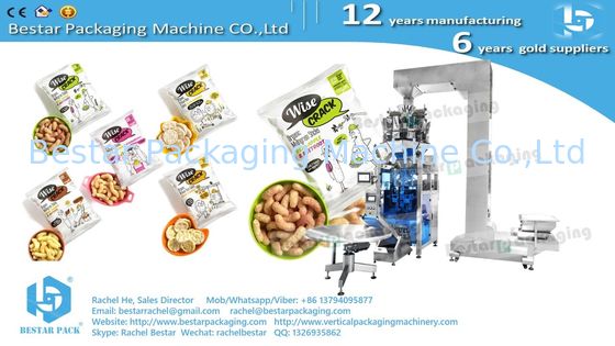 Bestar packing machinery manufacture multi heads weigher vertical grain packing machine, 10-heads or 14-heads combination weigher optional, suitable for the grain and granule products such as: popcorn, snack, puffed food, cheese chips, crispy rice, biscuit crack, crack chips, granule food, biscuit, crack, chip, rice, grain rice, long grain rice, cooked rice, sugar, garlic, spaghetti, vermicelli, soybeans, millet, macaroni, wheat, pumpkin seed, lentils, beans, peas, pulses, sesame seed, green grams, nut, peanut, crunchy coated peanuts, cashew nut, coconut, pistachio nuts, nutcracker, white peanut, groundnuts, mix nuts, raisins, dry fruits, nuts, dry fruit, sunflower kernels, dried pet food, almond, corn beans, sweets, apple slice, dumplings, rice balls, medicines, salad, etc.