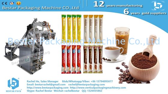 Bestar small powder packaging machine, automatic feeding and measuring the pure powder or flour materials, and filling making small sachet packaging. Machine customized with horizontal easy tear notch device.