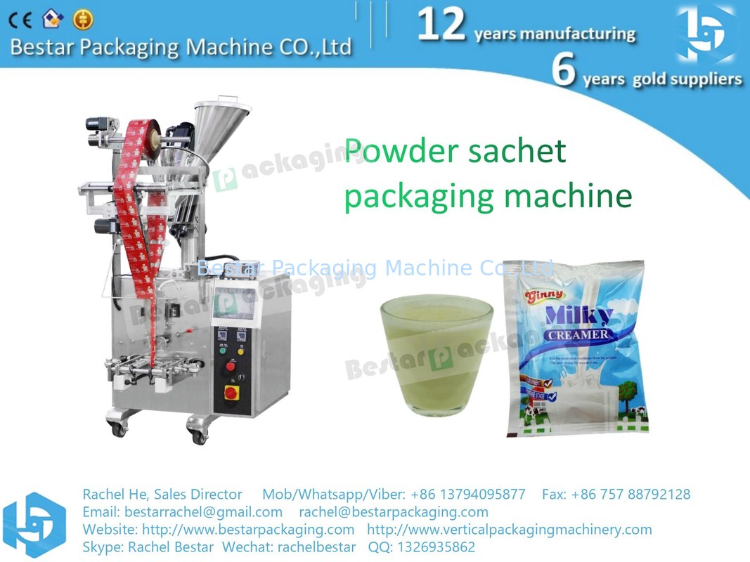 Bestar small powder packaging machine, suitable for 100% powder and flour small sachet packaging, such as hard wheat flour, bread flour, milk powder, bread powder, chocolate powder, jelly powder, curry flour, food amylum, whey protein powder, etc.