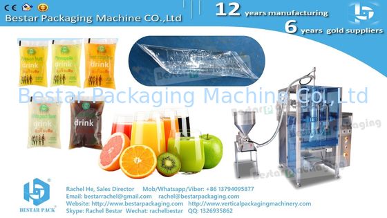 Bestar liquid packaging machine with stainless steel piston pump, suitable for 1000-2000ml juice pouch packaging, for example orange juice, apple juice, pear juice, coconut juice, cherry juice, mango juice, etc.