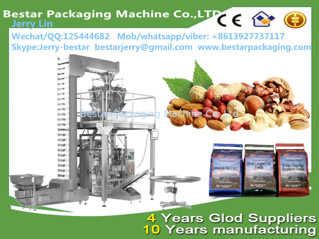 Bestar pacakging machine manufacture grain packing machine ,granule vertical packaging machine ,such as 500g-2KG nuts VFFS machine,nuts vertical packing machine,peanut vertical form-fill-seal machine,cashew nuts packaging machine,coconuts filling machine,pistachio nuts vetical packing machine,mix nuts vertical packaging machine with multi-heads weigher ,raisins weighting machine and packer machine,dry frutis VFFS machine,sunflower kernels automatic vertical form-fill-seal grain packaging machine ect.